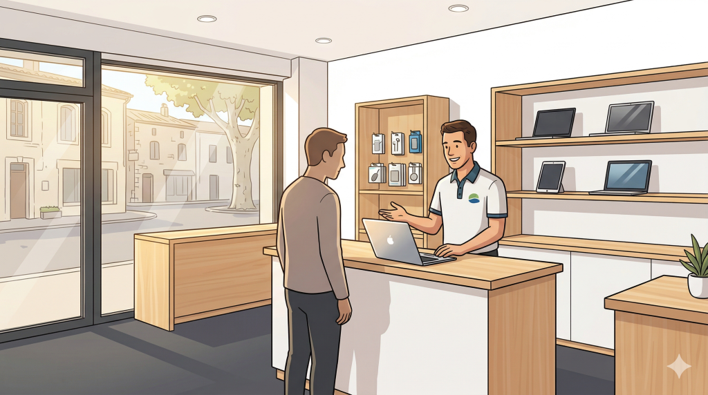 On n’est pas une grande enseigne. On est votre voisin informaticien : on connaît les clients par leur prénom, on se déplace quand c’est urgent, et on ne vous laisse pas tomber après la vente. Depuis Ganges, on accompagne particuliers, pros et collectivités avec le même sérieux.